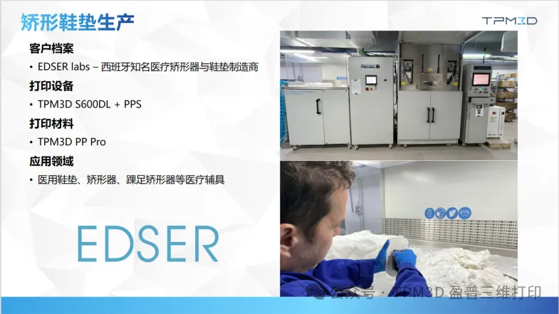 正如 Edser 負責人所言:“盈普設(shè)備是市場上唯一兼具大尺寸制造與批量生產(chǎn)能力的 3D 打印機,它徹底革新了矯形器行業(yè),讓復雜幾何設(shè)計的一體成型成為現(xiàn)實。”