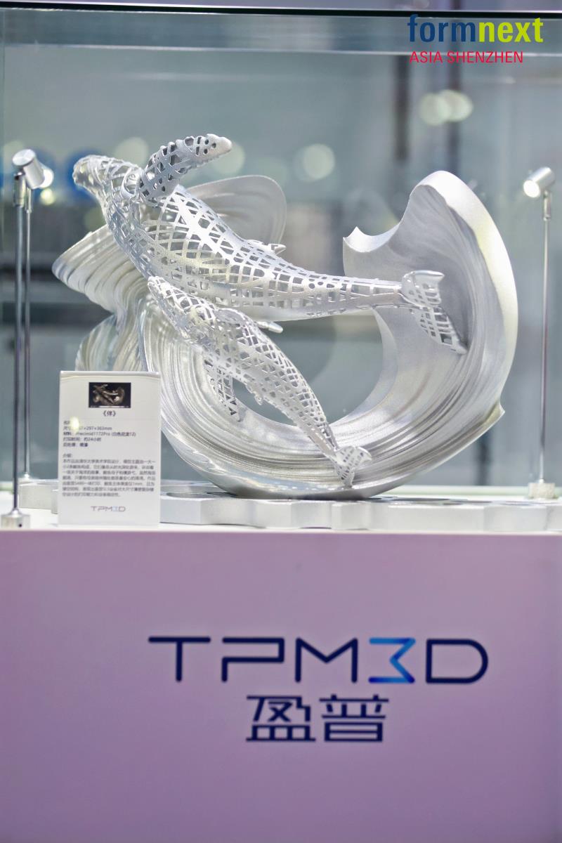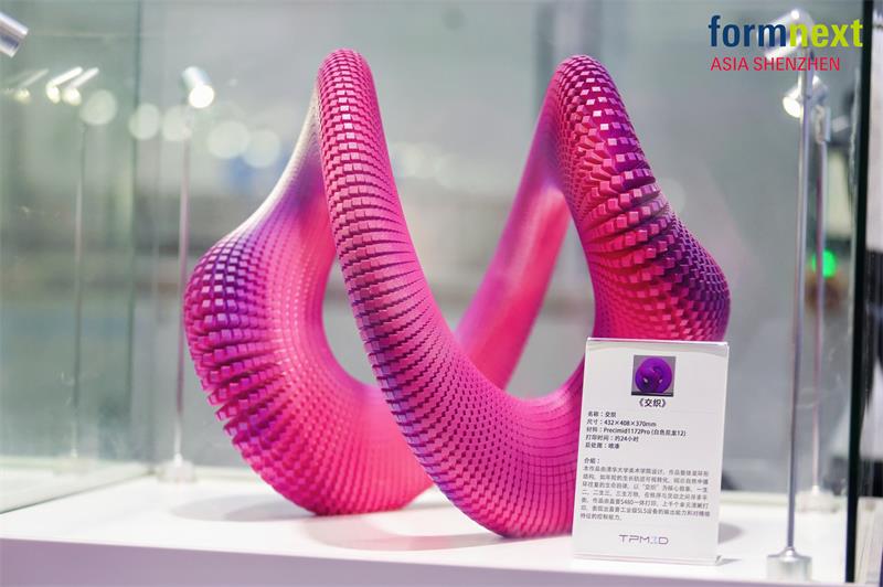 與清華美院雕塑系師生合作的藝術展件 《伴》與《交織》 成為展位上的"網紅"打卡點。這兩件作品不僅以其復雜的鏤空結構和精湛的后期處理效果展現了SLS技術無需支撐、成型精度高的核心優勢,更值得一提的是,它們由100%全舊粉打印完成,這不僅節省了材料成本,更有力證明了盈普PPS設備在粉末老化控制方面的卓越性能,實現了藝術價值與環保理念的統一。