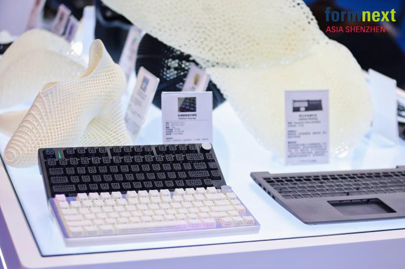 消費電子:現場展出的鼠標外殼、鏤空鍵帽、筆記本外殼等全新展件,為產品的外觀驗證與原型設計提供了快速、高效的解決方案。其中,鏤空鍵帽兼具炫酷RGB光效與指尖按摩般的使用體驗,令人眼前一亮。